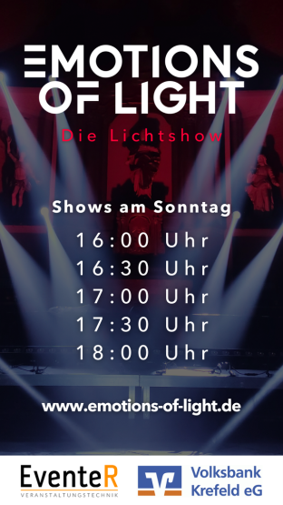 Auch in diesem Jahr verwandelt sich die Alte Kirche Lobberich zum Adventsmarkt in einen Ort voller Magie. „Emotions of Light“ nimmt euch mit auf eine rund 20-minütige Reise durch die faszinierende Welt der Filmmusik – von sanften Klängen über mitreißende Melodien bis hin zu echter Gänsehaut-Musik. Begleitet wird diese musikalische Reise von einer großen Lichtshow, die die Musik mit Licht inszeniert – ein Erlebnis für alle Sinne. Freut euch auf musikalische Highlights aus Star Wars, Oppenheimer, La La Land und vielen mehr!