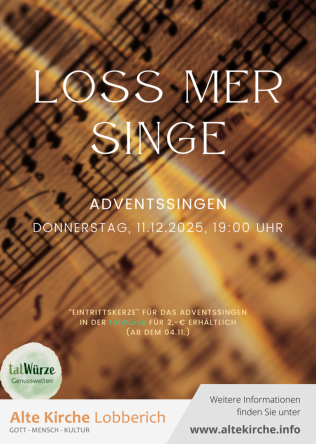 Wir zünden erneut die Kerzen an und packen die Instrumente aus. Wiedereinmal laden wir zu “Loss mer singe” in die Alte Kirche ein.