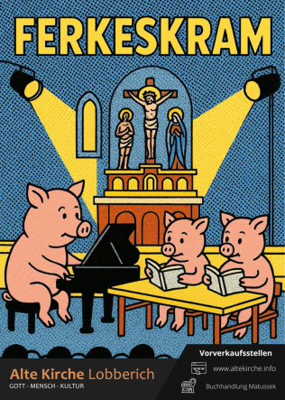 Der Verlockung, mal etwas zum „Ferkesmarkt” beizutragen, konnten wir – nachdem die Idee einmal im Raume stand – nicht mehr widerstehen. Und so wird es… „Ferkeskram”! Und seien Sie unbesorgt: Es wird ganz bestimmt… nahezu… fast… jugendfrei. Lassen Sie sich ein, lassen Sie sich wieder einmal überraschen: Was haben wir für Geschichten gefunden? Und: Wie werden wir das Ganze musikalisch begleiten? Wir haben so viele Ideen…!
